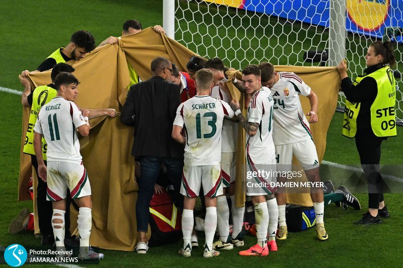 بارناباس وارگا بازیکن مجارستان با مصدومیت شدیدی مواجه شد و از ناحیه سر آسیب دید.