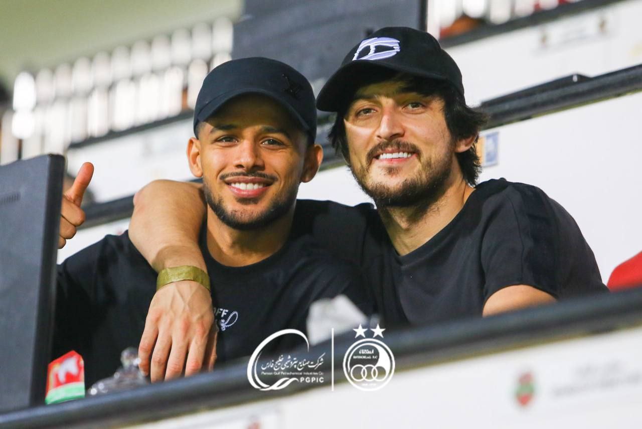 قاب یادگاری سردار آزمون و مهدی قایدی که برای حمایت از استقلال مقابل پاختاکور در استادیوم راشد دبی حضور داشتند.