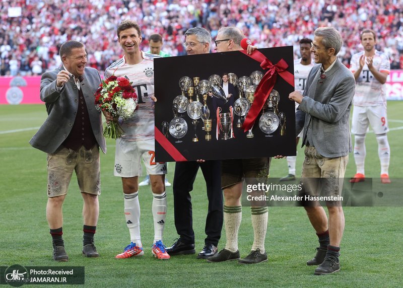 توماس مولر امشب آخرین بازی خود را در استادیوم آلیانتس آرهنا انجام میدهد و به همین بهانه مورد تقدیر باشگاه بایرن مونیخ قرار گرفت.
