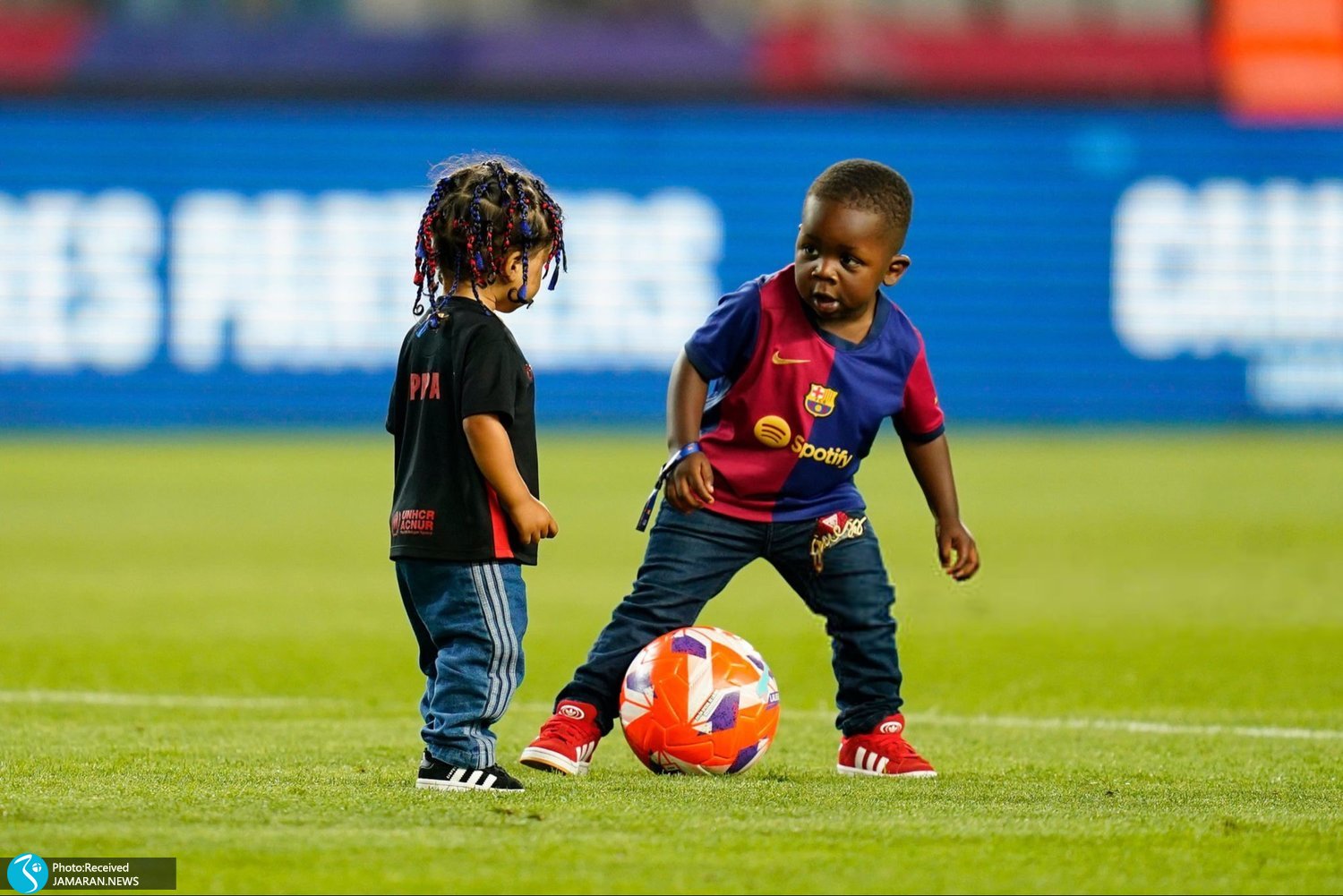 برادر لامینه یامال و پسر رافینیا پس از پایان مراسم اهدای جام در ورزشگاه  المپیک بارسلونا