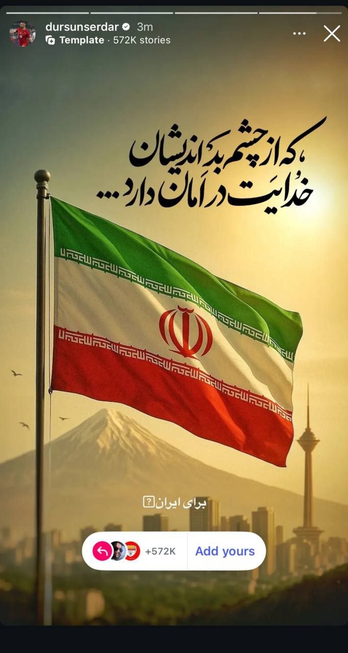 بازیکن ترکیه‌ای پرسپولیس استوری مشترک ورزشکاران در حمایت از ایران را منتشر کرد.