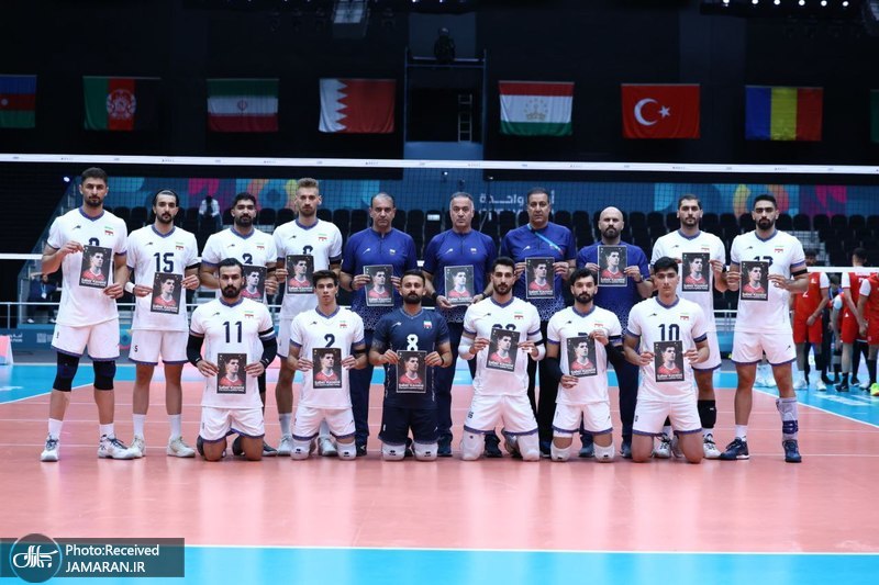 بازیکنان تیم ملی والیبال ایران با بازوبند مشکی، نخستین دیدار خود در بازیهای کشورهای اسلامی را برگزار کردند.