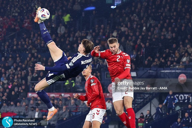 جماران ورزشی؛ در جریان دیدار تیم های ملی فوتبال اسکاتلند و دانمارک در انتخابی جام جهانی 2026، اسکات مک تومینای یک گل با ضربه برگردان وارد دروازه دانمارک کرد.
