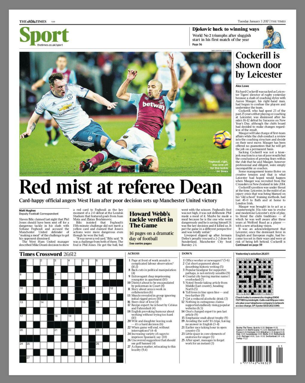به گزارش جی پلاس، تصاویر نیم صفحه روزنامه‌های ورزشی خارجی چاپ امروز سه شنبه 14 دی (3 ژانویه) به مسائل مختلف ورزشی به خصوص فوتبال اختصاص دارد.