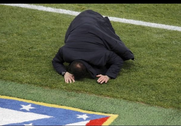 سرمربی تیم فوتبال اتلتیکومادرید اسپانیا در صحنه درگیری پیکه و تورس کنترل خود از دست داد و روی زمین افتاد.