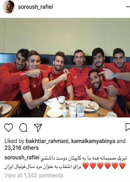 به گزارش جی پلاس، سروش رفیعی با انتشار پستی در صفحه اینستاگرام خود از طرف بازیکنان پرسپولیس، انتخاب سیدجلال حسینی در نظرسنجی برنامه شب گذشته نود به عنوان بازیکن سال کشور را تبریک گفت.