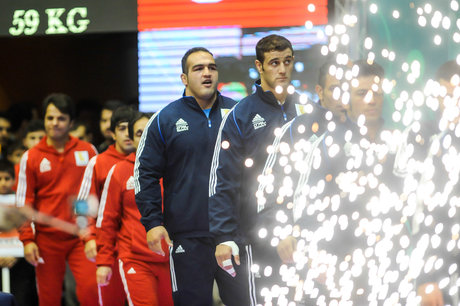* اعضای شورای فنی تیم های ملی کشتی فرنگی نیز در سالن مسابقات حضور دارند.