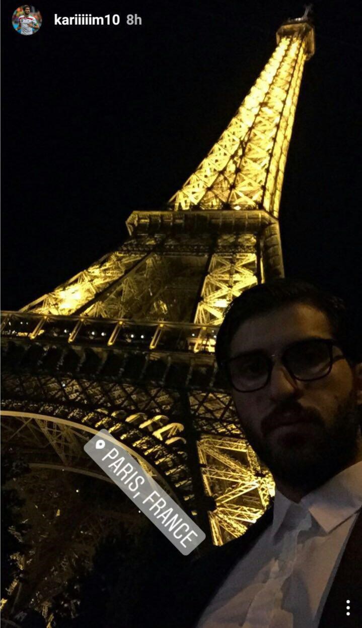 به گزارش جی پلاس ، کریم انصاری فرد که در تعطیلات پیش از فصل به سر می برد راهی پاریس شده است. او در استوری اینستاگرام خود عکسی از خود با برج ایفل منتشر کرده است.