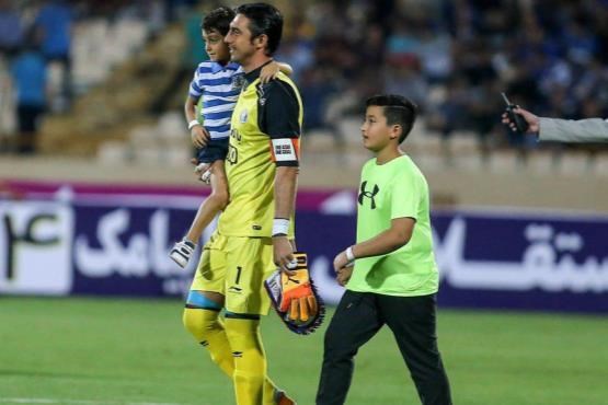 مهدی رحمتی پس از پایان دیدار به همراه پسرانش علی و عطا وارد میدان شد و کلین شیت خود را اینگونه جشن گرفت.