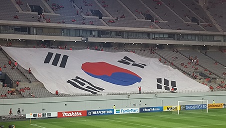 هواداران کره ای پرچم 1500 را پشت یکی از دروازه ها نصب کردند.