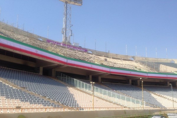 اکنون پیشانی ورزشگاه آزادی منقش به پرچم جمهوری اسلامی ایران شده است.