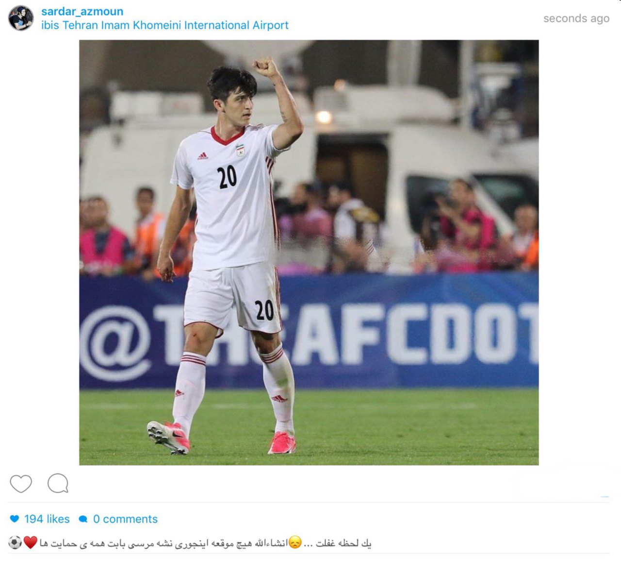 به گزارش جی پلاس، سردار آزمون پیامی را در اینستاگرام منتشر کرد و از حسرت به جامانده اش از بازى شب گذشته برابر سوریه گفت.