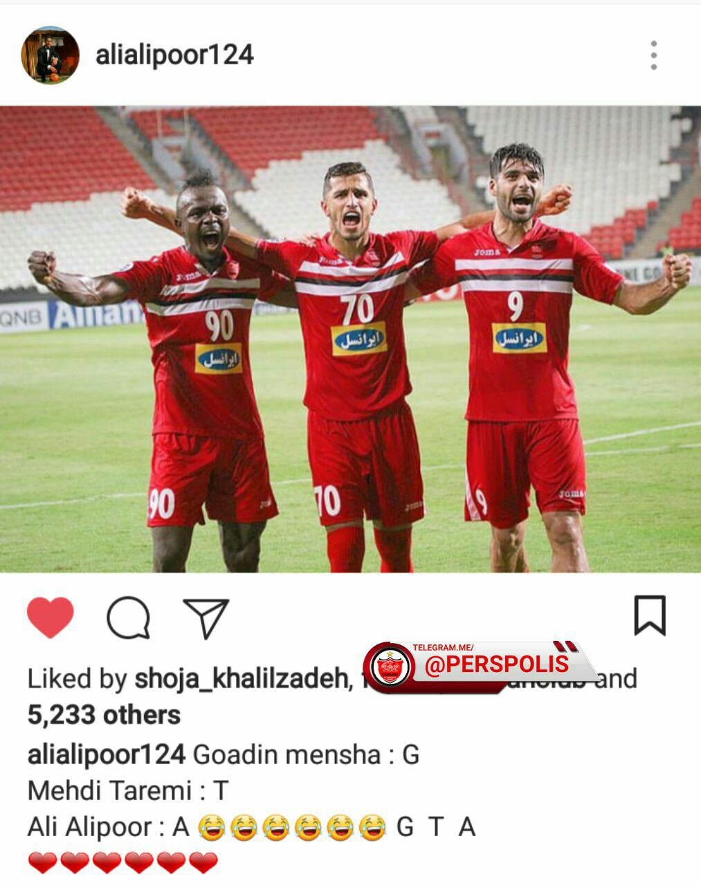 به گزارش جی پلاس، علی علیپور پس از پیروزی سه بر یک شب گذشته (سه شنبه) پرسپولیس مقابل الاهلی پست جدیدی را در اینستاگرام خود منتشر کرد.