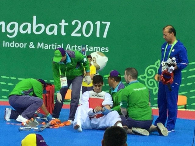 تکواندوکار ایرانی در رقابت های داخل سالن آسیا مصدوم شد و باخت.
