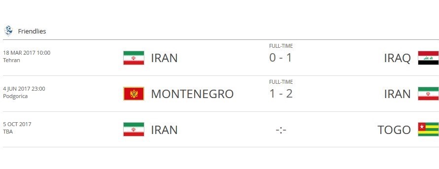 سایت فیفا که پس از رسمی شدن دیدارهای دوستانه، بازیها را در تقویم خود ثبت میکند دیدار دوستانه ایران و توگو را در تقویم خود ثبت کرده است. این در حالی است که شاگردان کارلوس کیروش قرار است 18 مهر ماه به مصاف روسیه بروند که فیفا هنوز این بازی را در تقویم خود قرار نداده است.