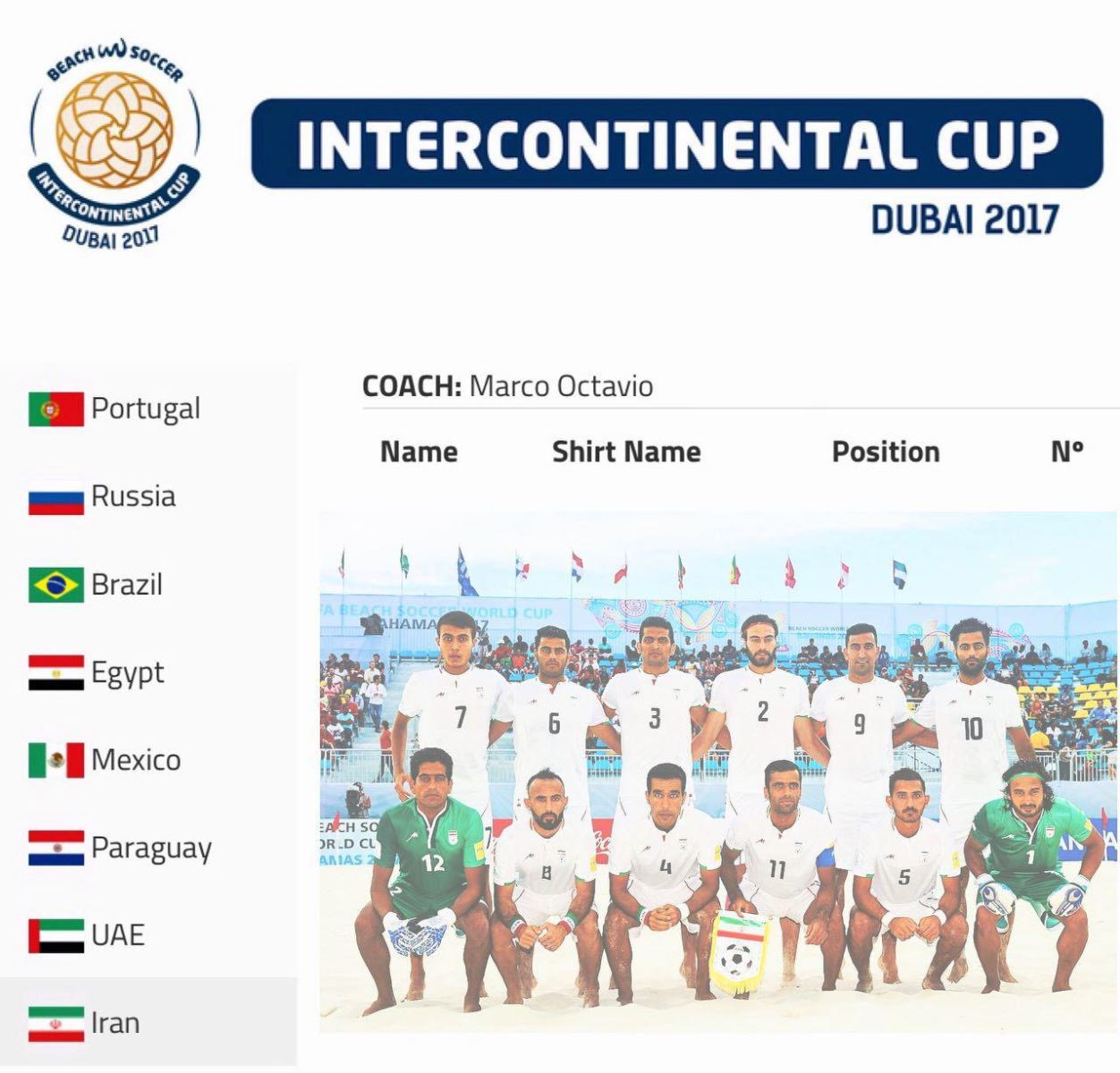 به گزارش جی پلاس، تیم ملی فوتبال ساحلی کشورمان که قهرمان رقابت‌های آسیایی شده است، از تاریخ 9 تا 13 آبان ماه باید در مسابقات جام بین قاره‌ای فوتبال ساحلی 2017 امارات حاضر شود.