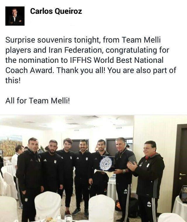 کارلوس کی روش پس از غافلگیری به وسیله بازیکنان و مسئولان فدراسیون فوتبال ایران در اردوی تیم ملی پیامی در صفحه اجتماعی خود منتشر کرد.