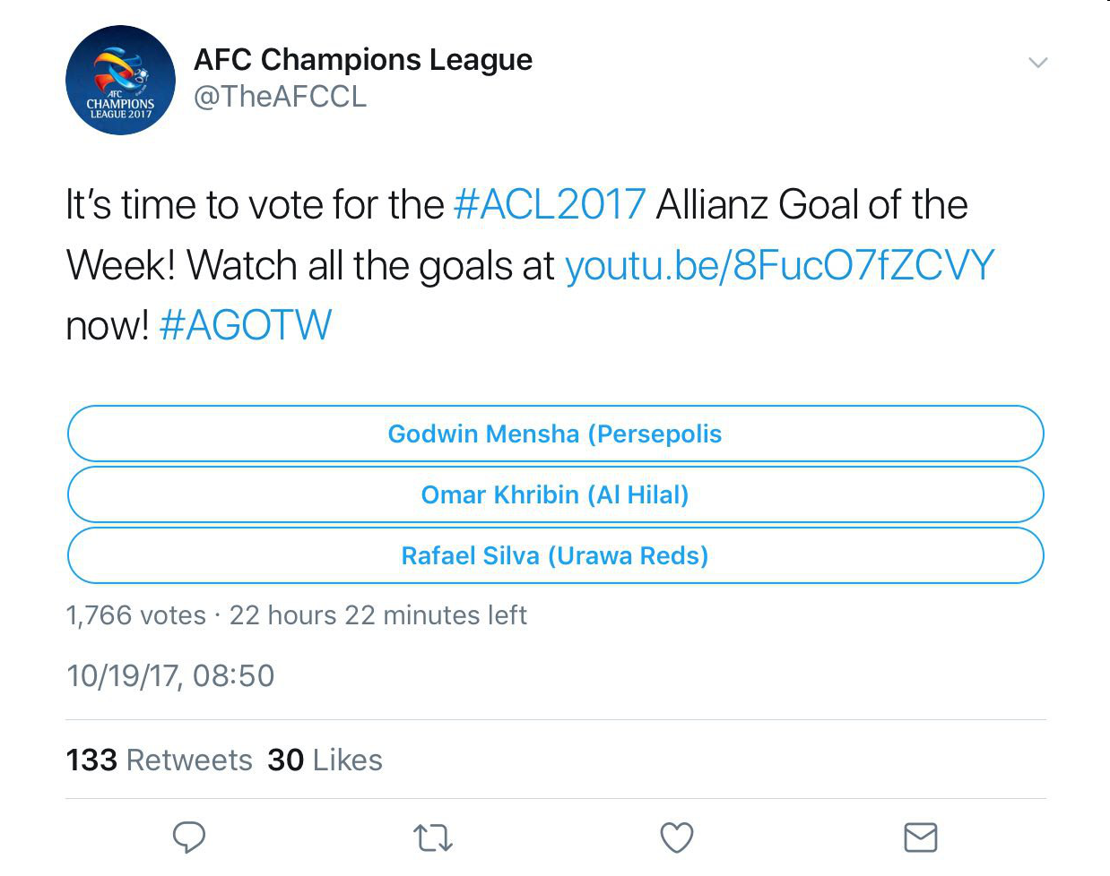 گادوین منشا کاندیدای زننده گل برتر دور برگشت مرحله نیمه نهایی لیگ قهرمانان آسیا شد.