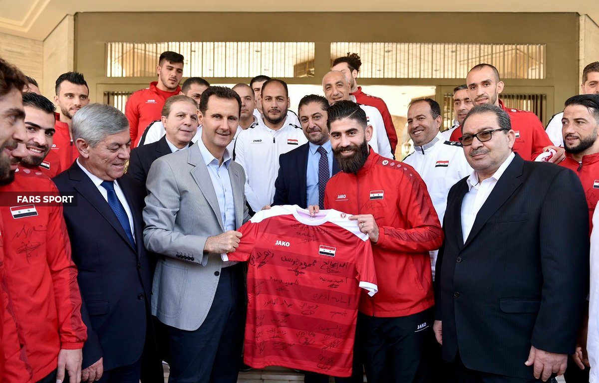 رئیس جمهور سوریه در این ملاقات بر روی پیراهن فراس الخطیب، یکی از بازیکنان تیم ملی سوریه که پس از ۶ سال دوری به تیم ملی برگشته بود، امضا کرد. تمام بازیکنان و کادر فنی تیم ملی سوریه بر روی یک پیراهن امضا زدند و به رئیس جمهور خود اهدا کردند.