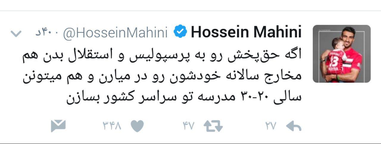 حسین ماهینی توئیت جدیدی منتشر کرد.