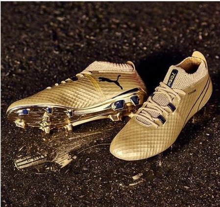 در این کفش طلا که سرخیو آگوئرو در صفحات اجتماعی شخصی خود به نمایش گذاشته 17.1 گرم طلا به کار رفته است واین ستاره آرژانتینی فیروزه ای پوشان منچستر اعلام کرده با این کفش های طلایی دروازه توپچی های لندنی را فتح خواهد کرد.