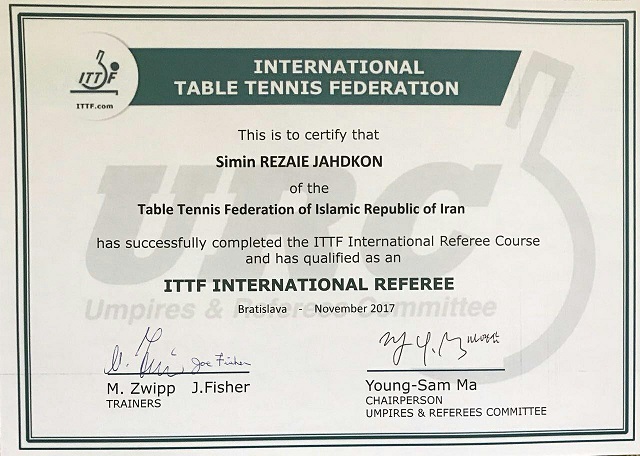 بانوی ایرانی به عنوان اولین سرداوری بین المللی تنیس روی میز کشور پذیرفته شد.