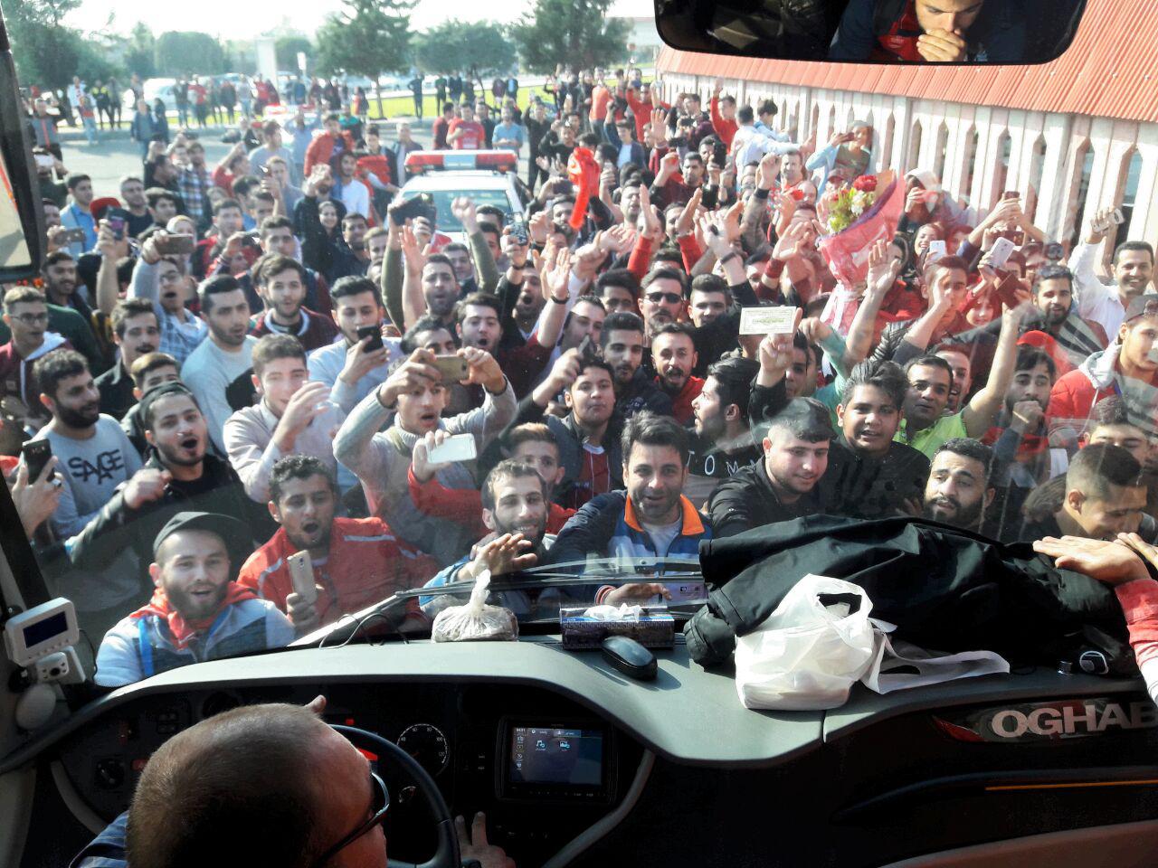 اعضای تیم فوتبال پرسپولیس به روال همیشگی عادت دارند که در سفر به هر شهری از ایران با استقبال هواداران روبرو شوند اما استقبال هواداران گیلانی و رشتی بیشتر از حد انتظار و تصور بود. جمعیتی که بالغ بر 500 نفر تخمین زده میشدند حتی برای دقایقی اتوبوس را از حرکت باز نگه داشتند. آنها خواستار آن بودند که بازیکنان برای گرفتن عکس پیاده شوند که این اقدام هم به جهت مسائل امنیتی و هم به دلیل بر هم زدن نظم و برنامه تیم میسر نبود. در نهایت نیز اتوبوس با احتیاط و آرام راه خود را از میان جمعیت باز کرد تا اعضای تیم به هتل محل اقامت خود در نزدیکی ورزشگاه قدیمی عضدی برسند.