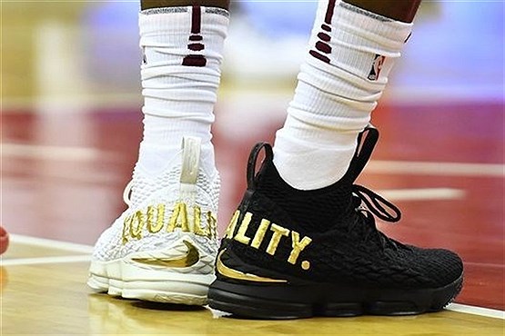 یکی سیاه یکی سفید؛ لبرون جیمز بسکتبالیست مطرح آمریکایی در مقابله با سیاست های نژادپرستانه ترامپ با شعار برابری این گونه لنگه به لنگه کفش می پوشد.