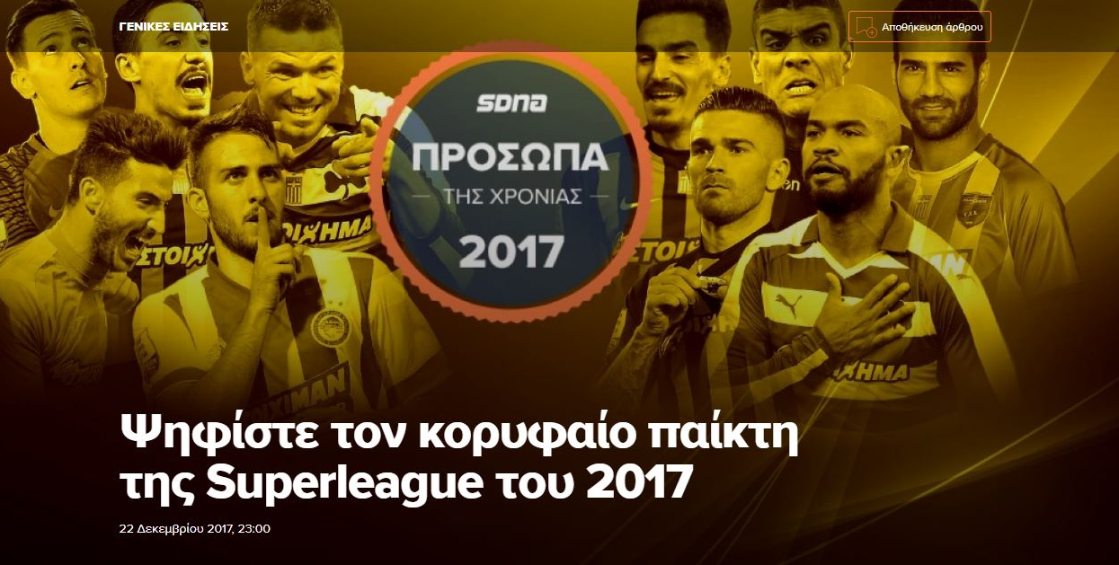 به گزارش جی پلاس، سایت رادیو ورزش یونان ۱۰ بازیکن را را از دیدگاه خودش به عنوان کاندیداهای برتر کسب جایزه بهترین ورزشکار سال ۲۰۱۷ یونان انتخاب کرد که مخاطبانش به این ۱۰ کاندیدا رای بدهند.