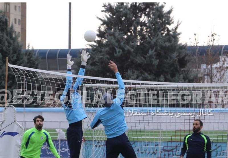 * دروازهبانهای استقلال در گوشهای از زمین به بازی والیبال پرداختند.