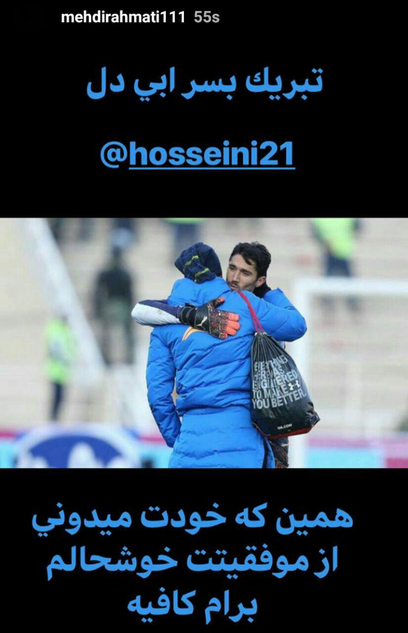 سید حسین حسینی، دروازهبان جوان آبیها توانست در دیدار مقابل سایپا رکورد جدیدی را به ثبت برساند. اکثر بازیکنان استقلال با پستهای مختلف این رکورد جدید سنگربان آبیها را تبریک گفتند اما رحمتی سکوت کرد تا بالاخره امروز در استوری رکورد جدید حسینی را تبریک گفت.