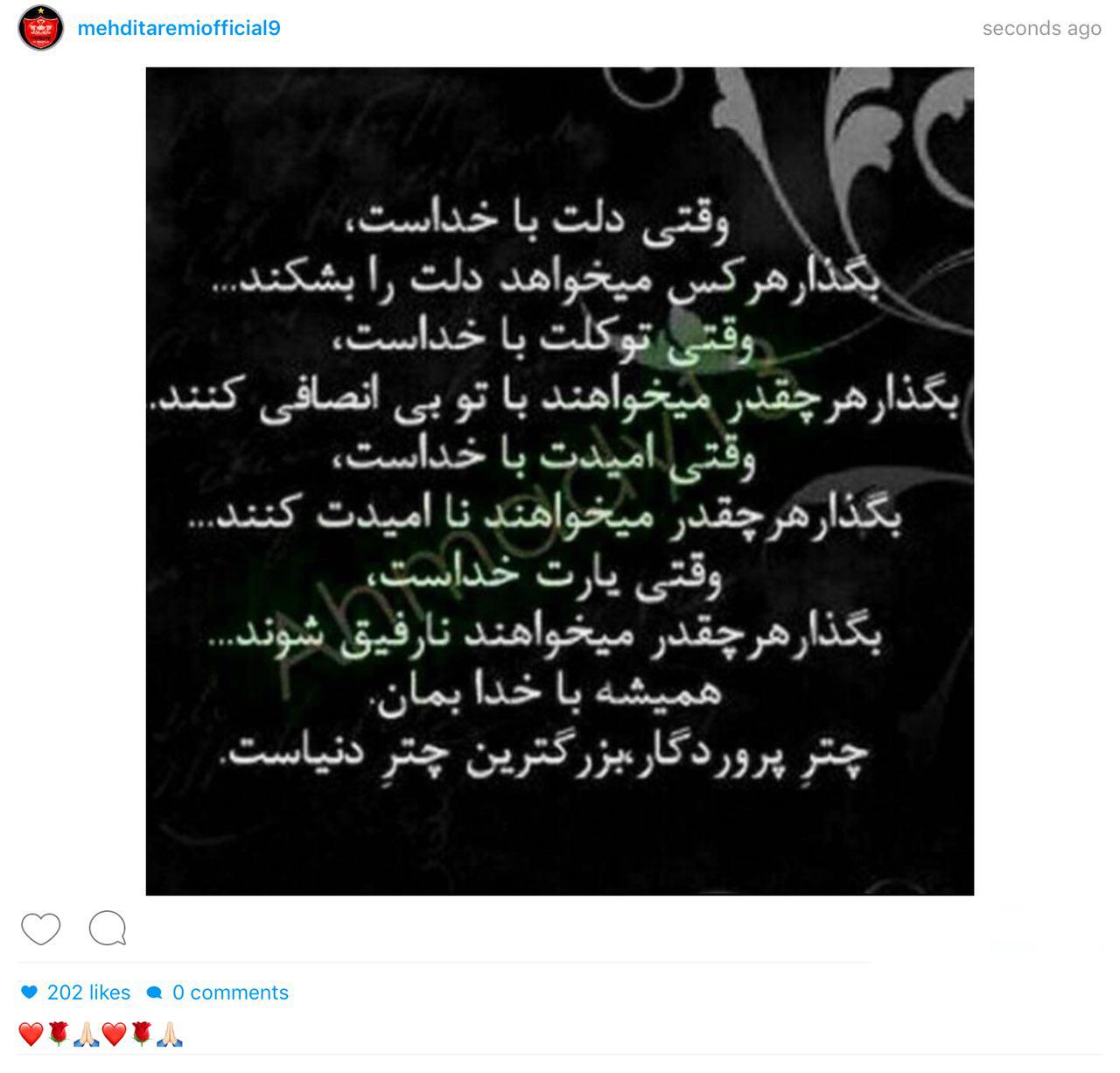 طارمی بعد از این صحبتها در آخرین پُست اینستاگرامی خود نسبت به انتقاداتی که به او میشود مطلبی را منتشر کرد.