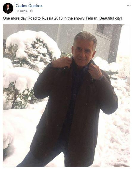 به گزارش جی پلاس، کارلوس کی روش، سرمربی تیم ملی فوتبال نسبت برف شدیدی که در تهران آمد واکنش نشان داد.