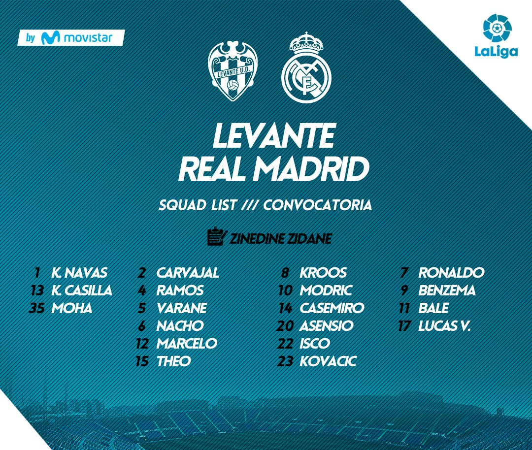 سرمربی رئال مادرید اسامی ۱۹ بازیکنش برای دیدار را با لوانته را اعلام کرد.