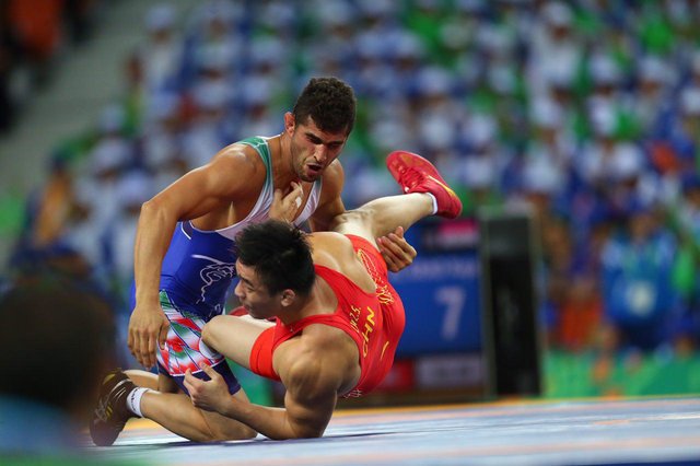 در وزن ۷۹ کیلوگرم، عزت الله اکبری پس از استراحت در دور نخست، در دور دوم باید با آدام باتیروف کشتی میگرفت که کشتیگیر روسی الاصل بحرین به دلیل مصدومیت به روی تشک نیامد. در نیمه نهایی نیز اکبری مقابل گانبولد از مغولستان ۱۰ بر صفر پیروز شد و به فینال رسید.