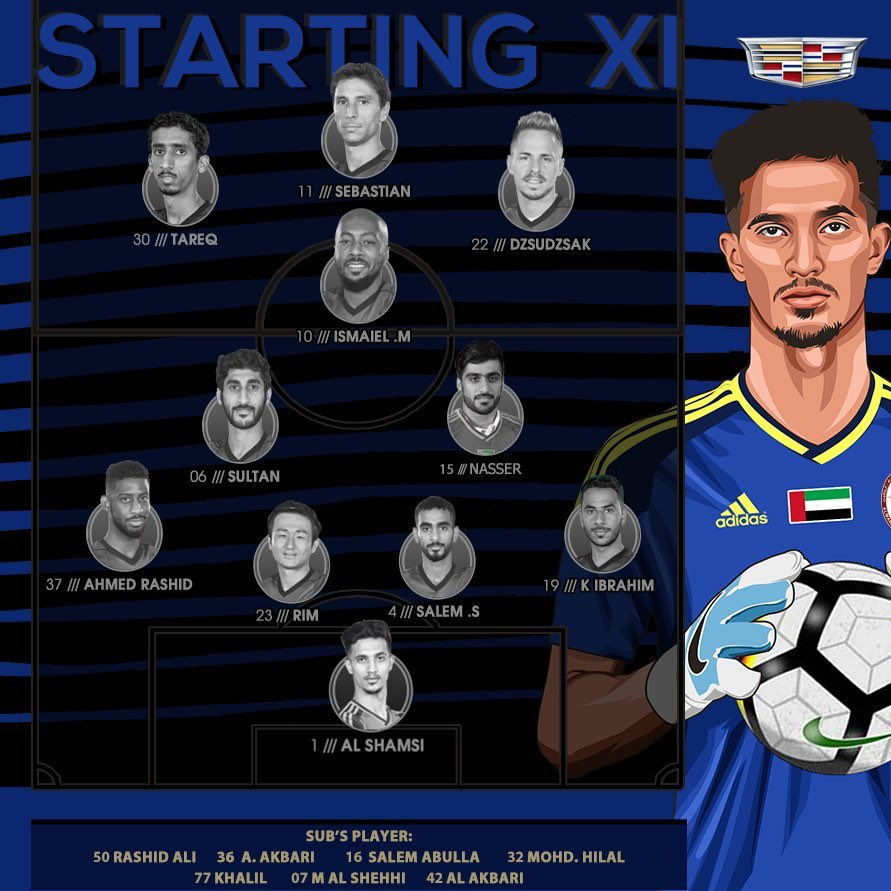 بر این اساس ۱۱ نفر اصلی الوحده برای این دیدار به شرح زیر است: محمد الشامسی، احمد رشید، خالد ابراهیم، سالم سلطان، ریم چانگ وو، سلطان الغافری، ناصر عبدالهادی، اسماعیل مطر، سباستیان تاگیانو، طارق احمد و بالاگ.