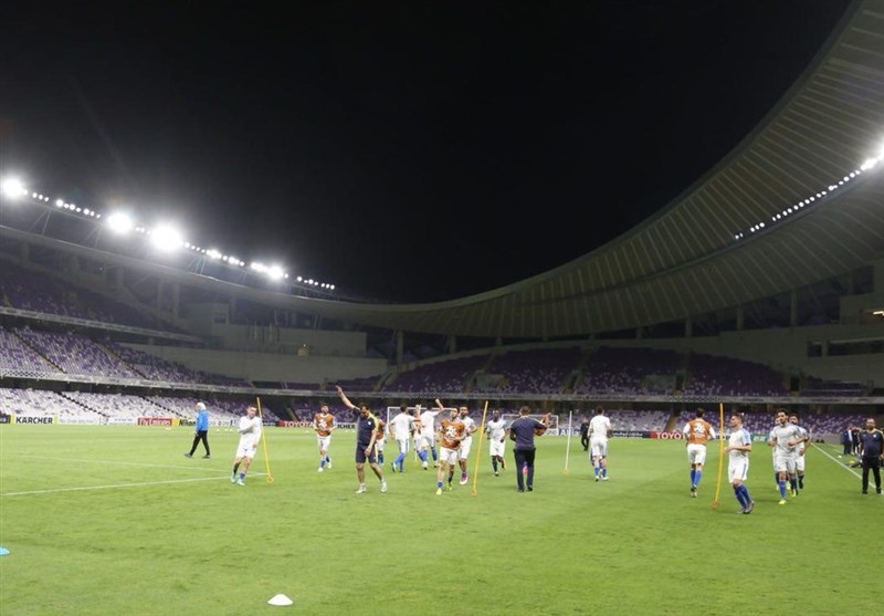 بازیکنان استقلال برای آگاهی از وضعیت زمین ورزشگاه هزاع بن زاید دقایقی در زمین حضور یافتند و سپس راهی رختکن شدند.