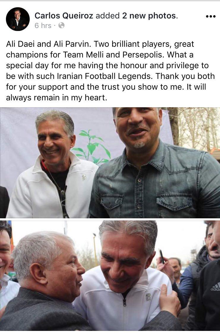کارلوس کی روش سرمربی تیم ملی فوتبال پست جدیدی را در صفحه فیسبوک خود به اشتراک گذاشت.