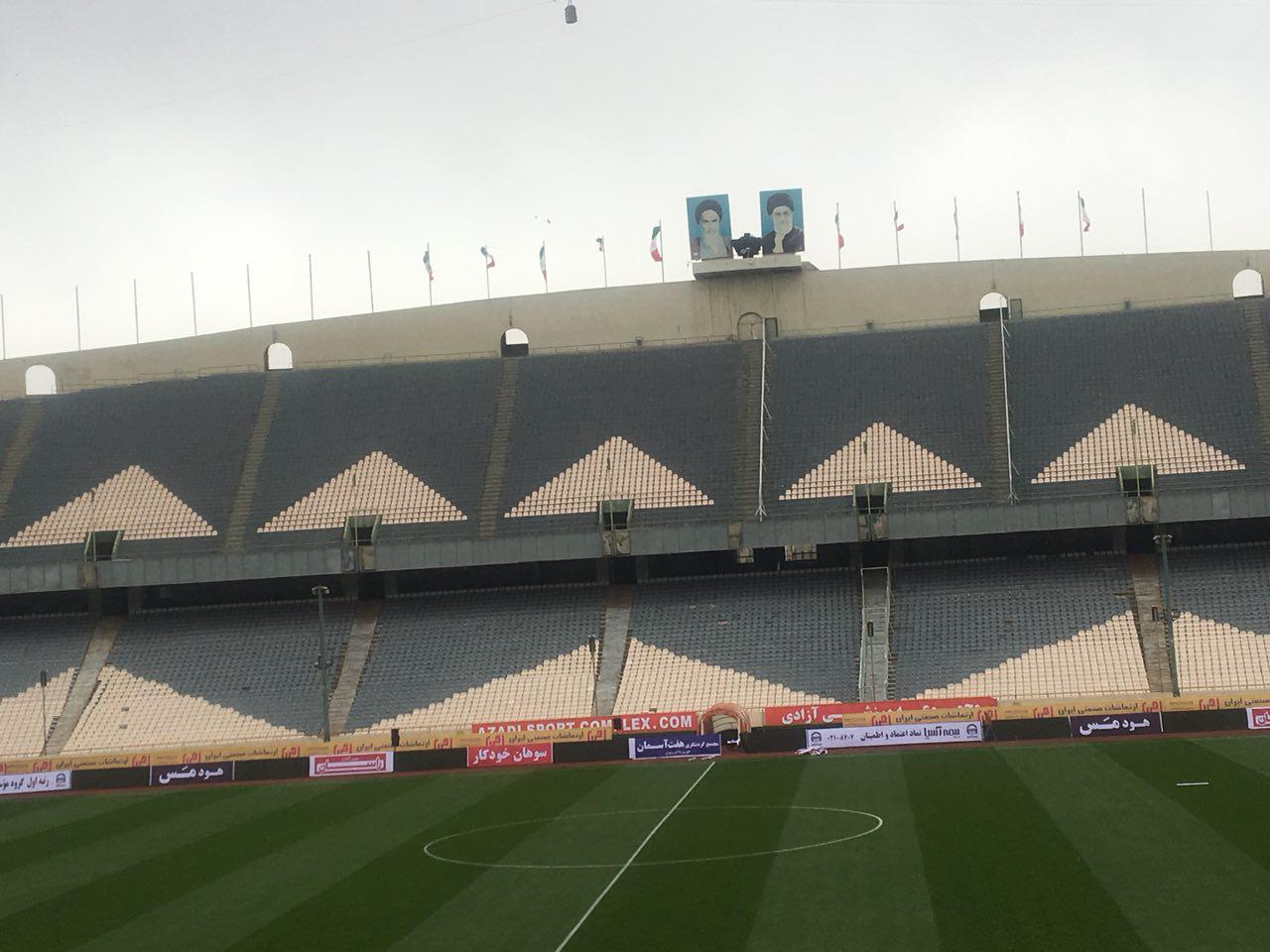 درهای ورزشگاه آزادی نیز هنوز باز نشده و حتی مسئولان ورزشگاه هنوز برخی از موانفع تمرینی از جمله دروازه های اضافی که از تمرین روز گذشته تیم ملی باقی مانده را از روی زمین چمن برنداشتند.