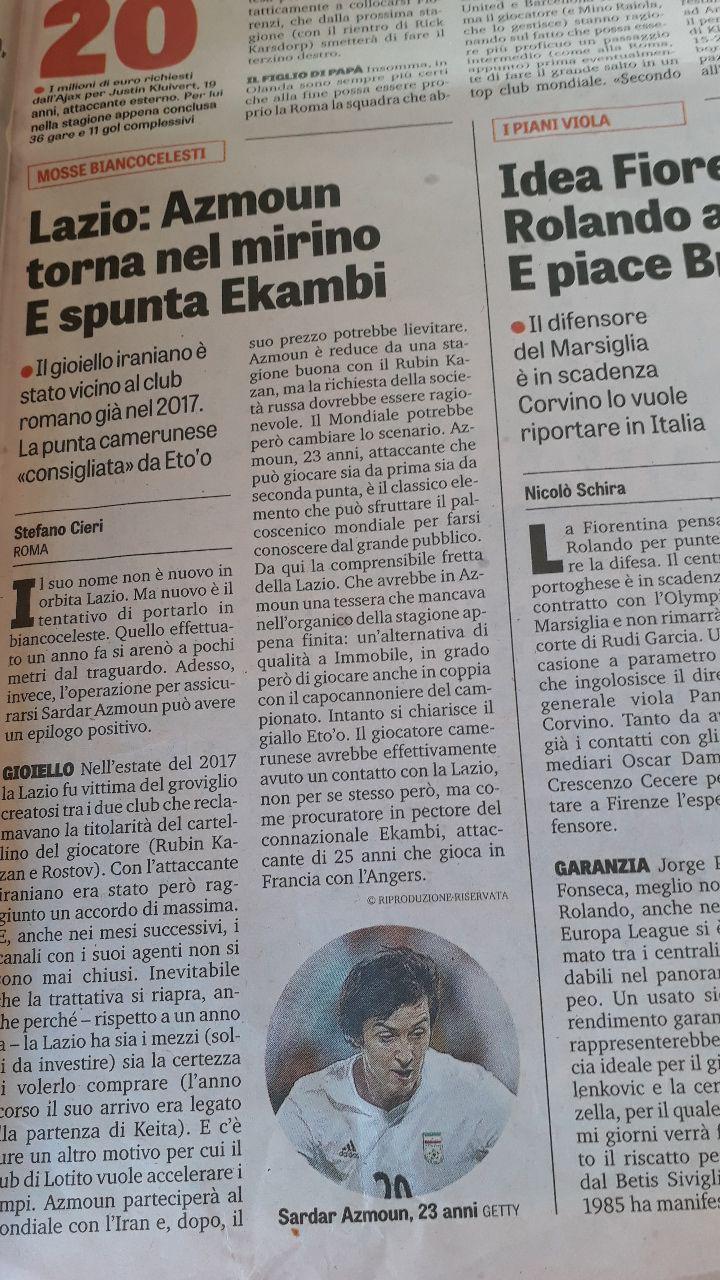 به گزارش سرویس ورزشی جی پلاس، روزنامه گاتزتا دلو اسپورت چاپ کشور ایتالیا در شماره امروز صبح خود بار دیگر به علاقه لاتزیو به جذب سردار آزمون مهاجم تیم فوتبال روبین کازان پرداخت.