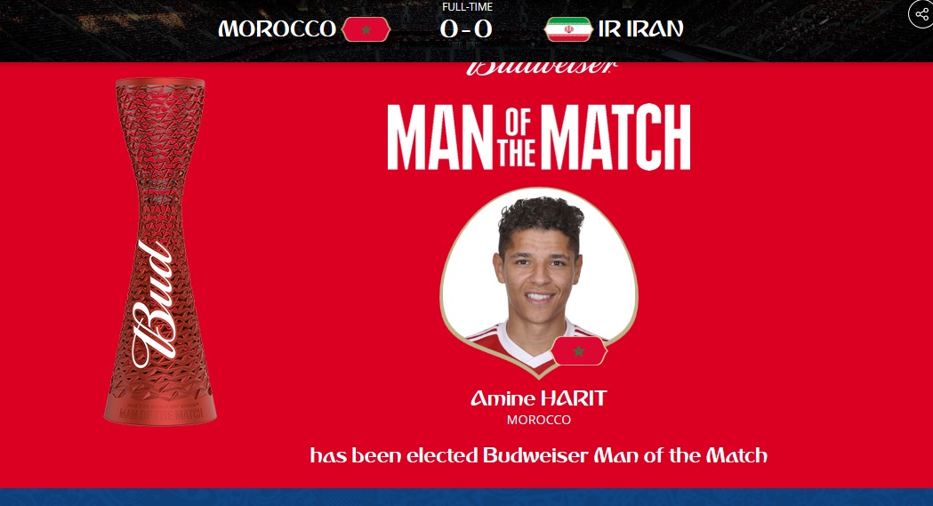 حارث بهترین بازیکن دیدار ایران و مراکش شد.