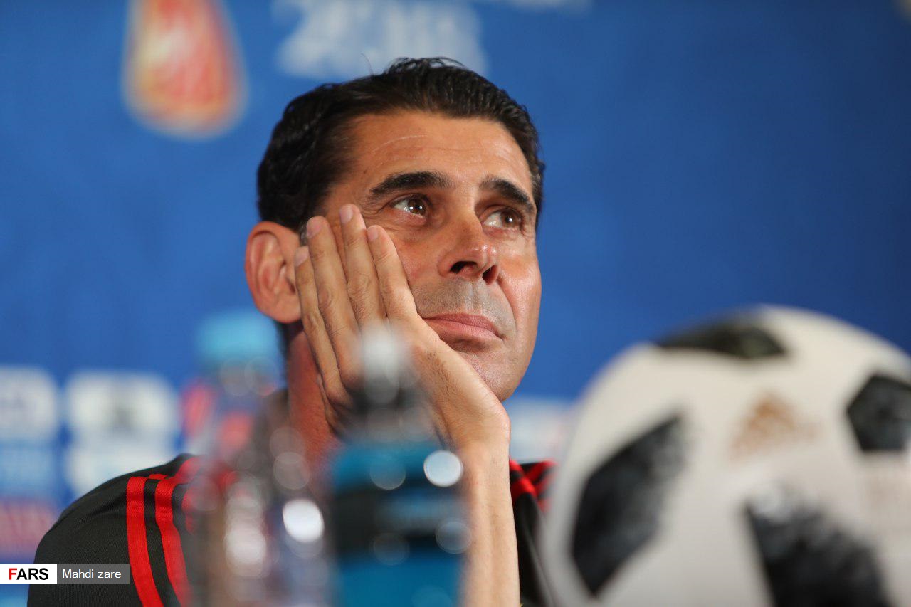 سرمربی تیم ملی اسپانیا گفت: بازیکن ما یک هفته‌ای است که با تیم تمرین می‌کند و حال خوبی دارد. این بازیکن با فیزیوتراپ تمرین کرده و از فردا در اختیار ما خواهد بود. ما باید بازی با پرتغال را فراموش کنیم و روی ایران متمرکز شویم. تیم ما مقابل پرتغال خوب بازی کرد و ما احساس خوبی داشتیم اما بازی دوم ما با ایران سخت است و در ۴ سال ما یک بازی به این ترتیب داریم. ما باید فرصت‌های زیادی را در دیدار با ایران خلق کنیم و سه امتیاز را از ایران بگیریم. فردا بعد از ساعت ۱۰:۳۰ (به وقت ایران) می‌خواهیم هرچه در توان‌مان است را در زمین به نمایش بگذاریم. شرایط سخت خواهد بود زیرا رقیب ما بسیار قوی است اما می‌دانیم که باید کارمان را درست انجام دهیم پس باید به خودمان اطمینان داشته باشیم.