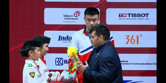 *حسین رضازاده عضو هیات اجرایی کنفدراسیون وزنه برداری آسیا مدال های دسته ۸۵ کیلوگرم را اهدا کرد.