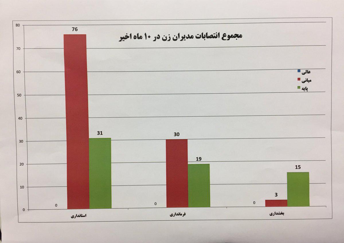 نتیجه: بخش اول گزارش استانداری های کشور حاکی از انتصاب ۱۷۴ ‎مدیر زن  در سطوح پایه و میانی طی سال گذشته است، که رشد قابل توجهی نسبت به سال های گذشته دارد. البته در زمینه مدیران عالی هنوز  جای کار زیادی داریم.»