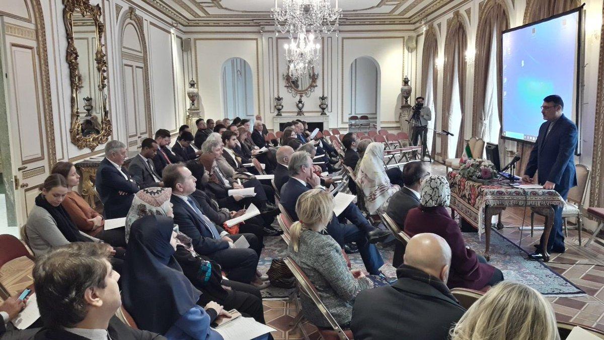 «سمینار یک روزه شناخت فرهنگ و تمدن ایران زمین برای آشنایی دیپلماتهای مقیم لندن واعضای جامعه اقتصادی، تجاری، دانشگاهی و حقوقی انگلستان در سفارت جمهوری اسلامی ایران در لندن برگزار گردید. اساتید برجسته در این سمینار جلوه های برجسته ۷ هزار سال تاریخ، هنر، موسیقی و ادبیات ایران را تشریح نمودند.»