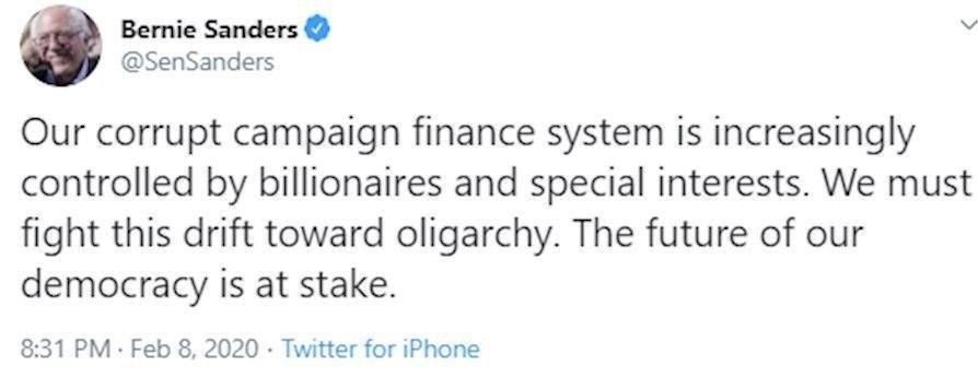 «سیستم تأمین مالی تبلیغات انتخاباتی ما به طور فزاینده از سوی میلیاردرها و (گروه های) دارنده منافع خاص کنترل می شود.