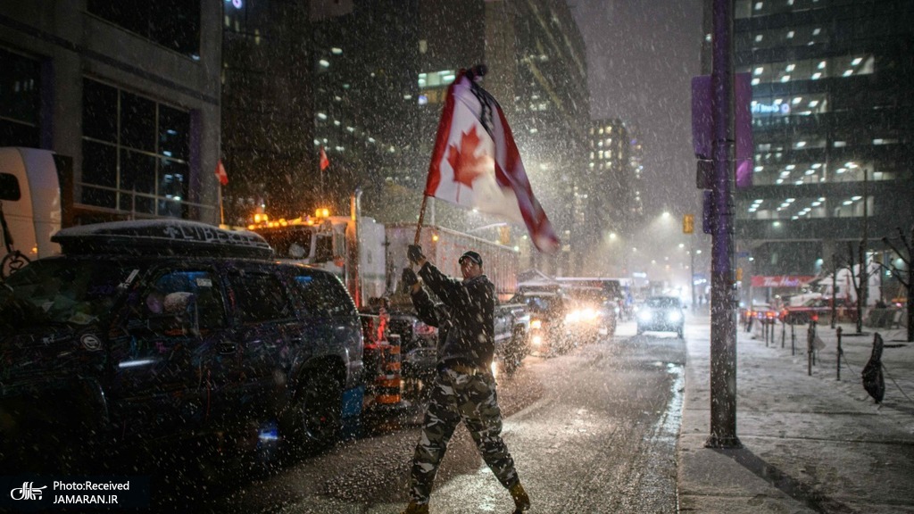 اتاوا، کانادا / بارش برف در حین اعتراض رانندگان کامیون به قوانین بهداشتی همه گیری کرونا. عکس: AFP