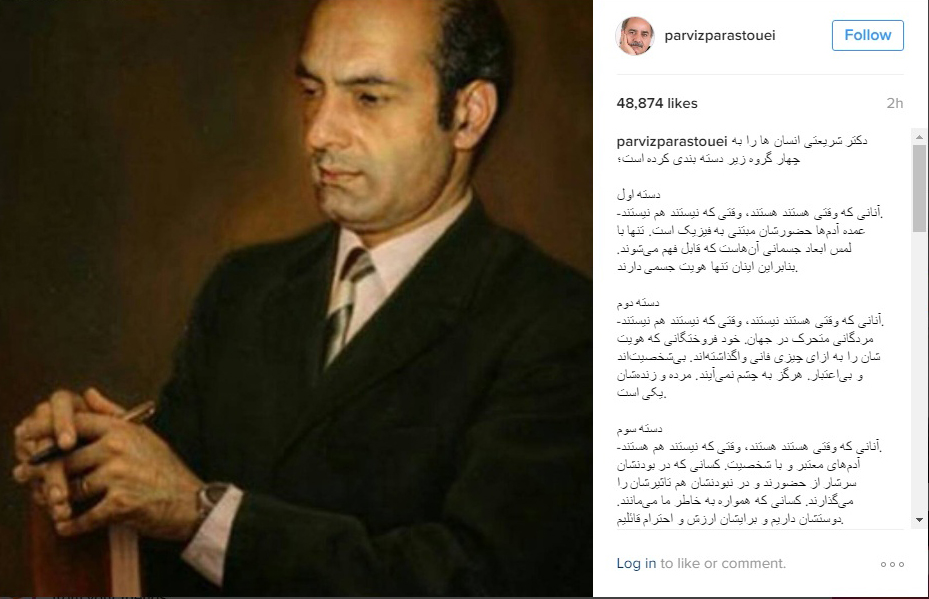 پرویز پرستویی در اینستاگرام خود از دسته بندی انسانها توسط زنده یاد دکتر علی شریعتی نوشته است.