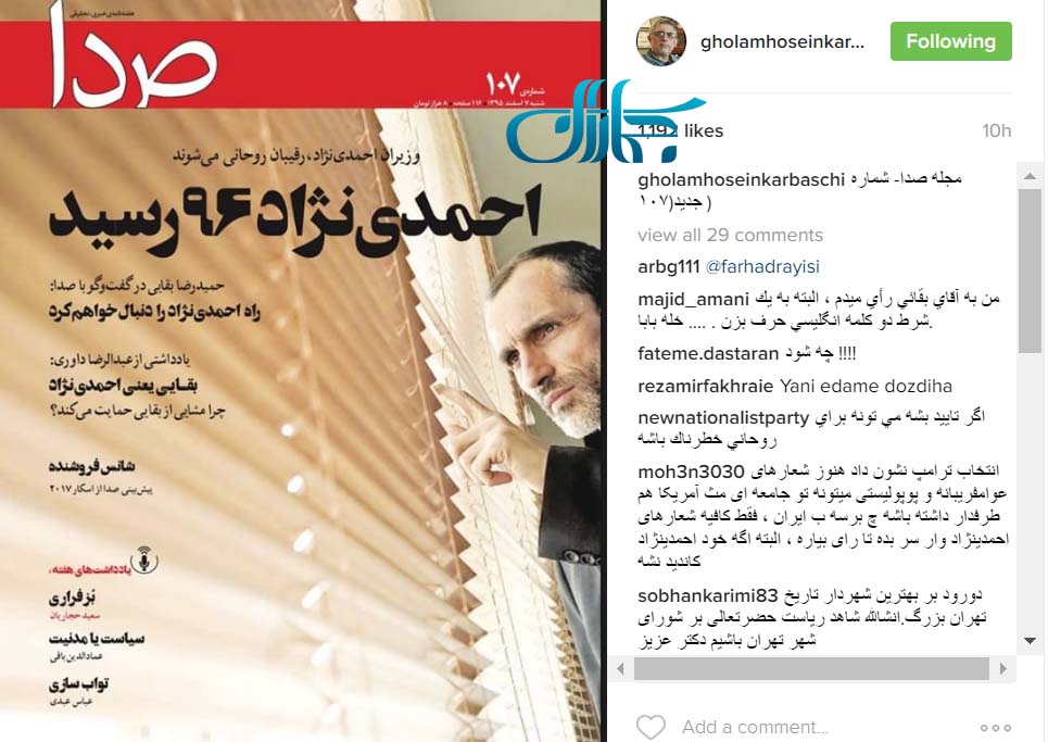 آخرین جلد مجله صدا در اینستاگرام کرباسچی؛