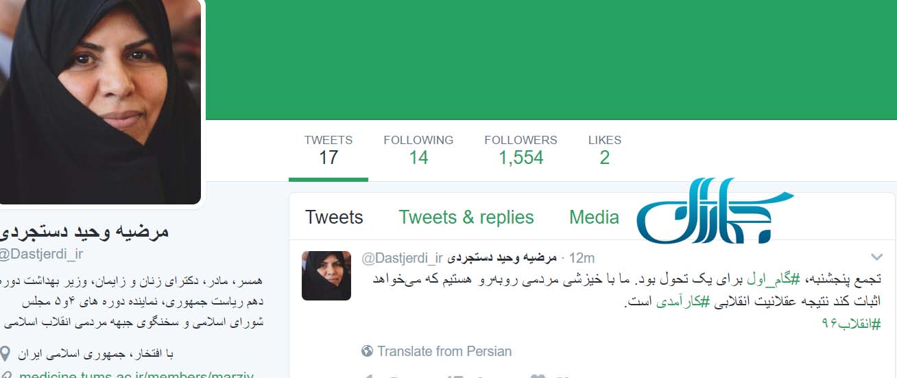 به گزارش جماران ، وی دو توئیت آخر خود را با هشتگ #انقلاب96 ارسال کرده است.